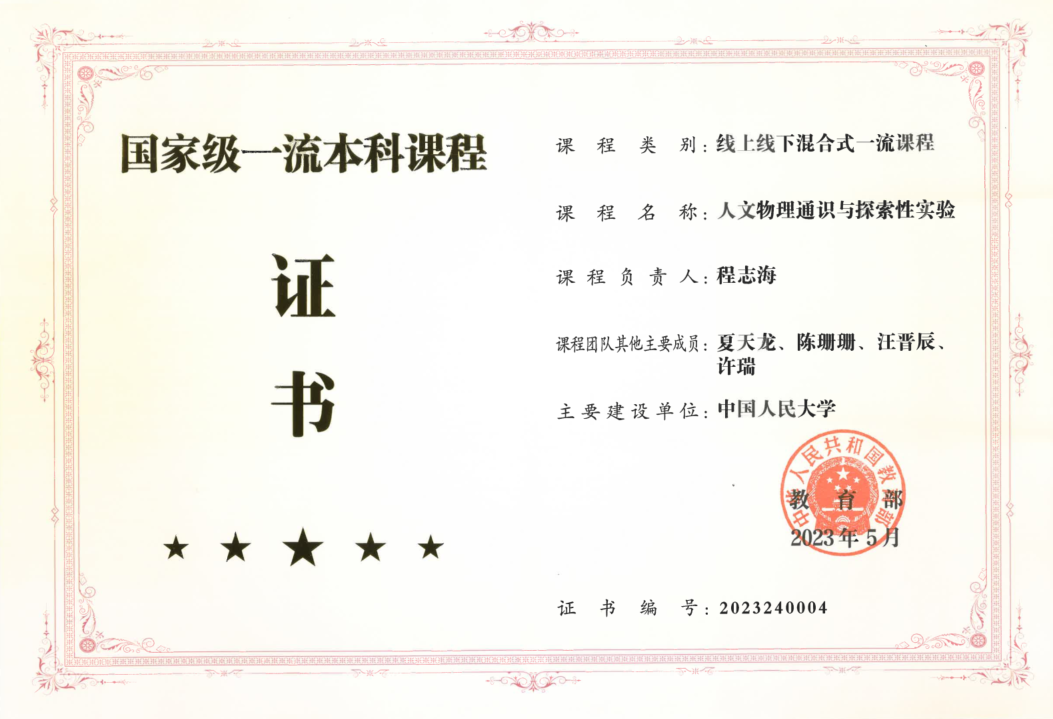 《人文物理通识与探索性实验》入选国家一流本科课程